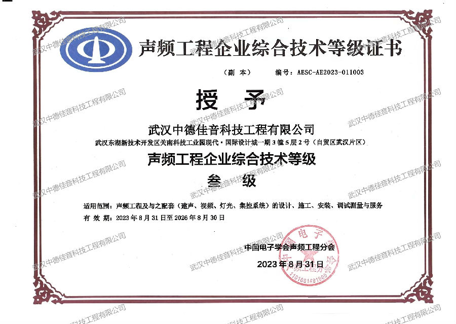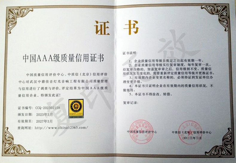 中国演艺设备技术协会会员单位 文明诚信企业证书