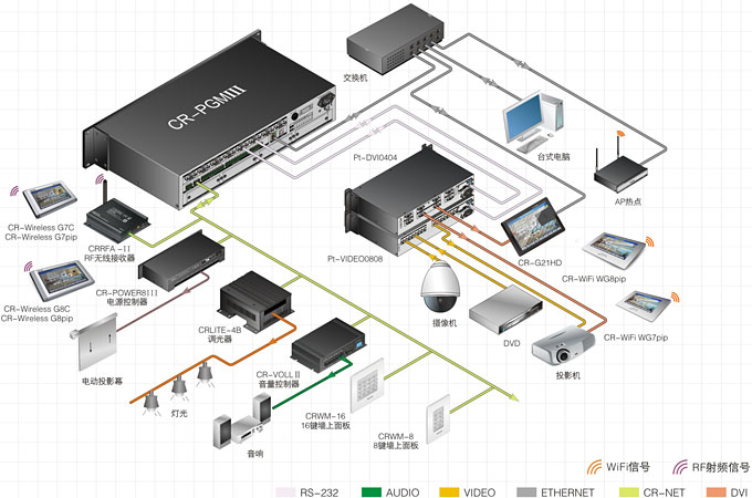 强大的网络功能,完善的周边设备,稳定可靠的机器性能;豪华C++版控制软件,全面支持Windows9x/2000/XP/NT操作系统;8路独立可编程红外发射接口;4路I/O接口,连接门磁开关或锁控面板;内置2路话筒输入带卡拉OK混响功能;4路独立可编程RS-232控制接口,可RS-232码分控多台投影机或第三方通讯设备,如:信号切换器、电源控制器、调光器、读卡器等;内置投影机灯泡检测延时电路,实现电动屏幕连动和完全保护投影机;采用一键式联动控制管理功能;内置6×3音/视频矩阵切换,并带预览功能,视频频宽高达100MHZ;内置4×2 VGA接口带400MHz长线驱动器,2路电脑音频;内置电动屏幕、投影机延时电源、设备电源、功放电源控制;内置专业数码音量、音色控制模块;可以导入导出设备红外码,方便保存和批量安装;内置2路网络交换机,一路可扩展网络接口;内置多种投影机RS-232控制代码;2路12V、1路5V网络供电;内置电脑开关接口;本系统适用于高档培训室、会议室、报告厅、多功能厅等场所。