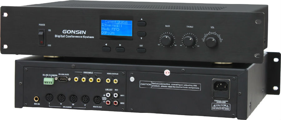 公信有线数字会议讨论表决主控机TL-ZB3采用大功率环形变压器,功率充足,单台主控机标准可挂载60~70个话筒单元(挂载的单元不同容量不同);主控机与扩容主机之间以及扩容主机与扩容主机之间都可以通过一条485连接线进行级联,达到最大容量超过1000席的大型系统;主控机内置4×1+1视频矩阵,在脱机情况下,只需增加摄像球机就能实现自动摄像跟踪功能;内置DSP啸叫抑制处理模块,在会场建声环境不理想时,可以开启DSP模块以防止啸叫;内置高低音补偿功能,可对高音和低音进行补偿,以实现完美的音质;可以实现报到、表决、选举和评议功能。