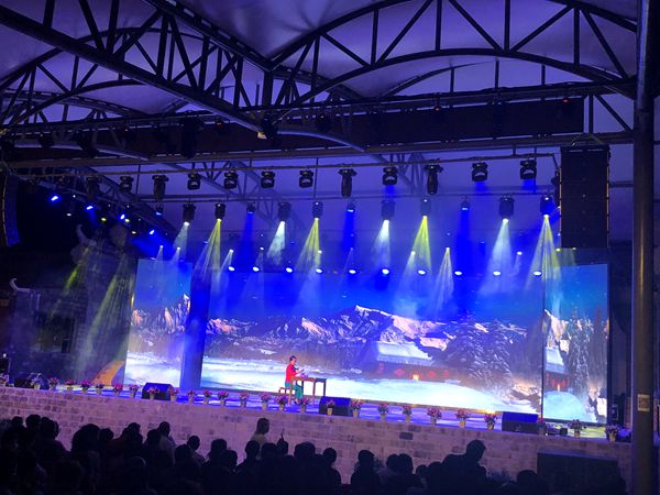 由武汉中德佳音科技工程有限公司承接的黄陂木兰文化小镇景区舞台声光电系统项目,舞台尺寸为宽18米,纵深12米,面积达216平方。观众席设固定坐位812个。舞台两侧各建有耳房一间,一间提供演员化妆使用,一间为音控室。考虑到舞台开放式的环境,音响配置为声必力户外防水全天候线阵音箱,舞台左右各吊装线性中高频音箱6只,地面放置4只双18寸低音音箱,为演出时提供澎拜的低音能量。舞台上放置4只单15寸全频返送音箱,作为演员监听演出效果使用。此次声必力所用的线阵系列音响的功能特点: