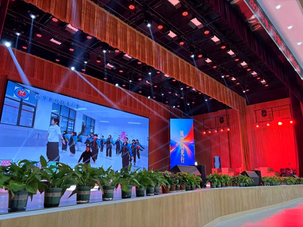 高清显示系统:中央主屏+两侧竖屏联动,可同步播放社团活动纪实、舞台画面与主题标语,实现“主内容+辅助信息”的分层展示,提升视觉传达效率。